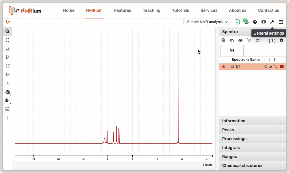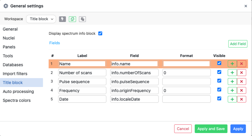 Sometimes, it may be required to display the acquisition parameters directly on the spectrum. This can be achieved through the General settings.