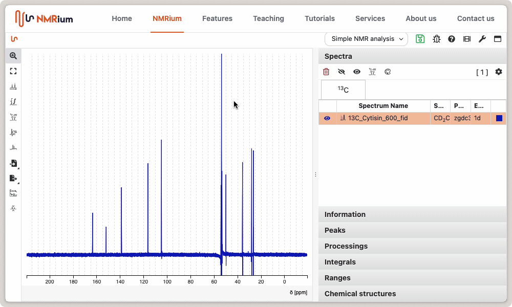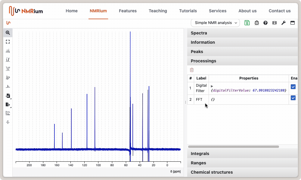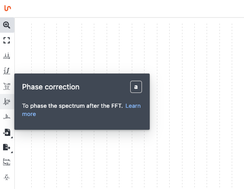 For zero-order phase correction, click and hold the green PH0 button located above the spectrum. By moving the mouse to the left or right, you can perform phase correction until the signal at the level of the pivot is correctly phased.